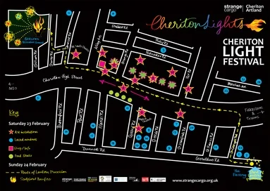 Strange Cargo a organisé deux fêtes des lumières à Cheriton. La première s’est déroulée en 2013 et fait l’objet d’une présentation ci-dessous. Strange Cargo a ensuite organisé une seconde édition de la fête des lumières à Cheriton en 2014, qui reposait sur la réussite de la première avec la participation de Face to Face, une commande de l’École d’Art de Calais, l’un des partenaires ICR de Strange Cargo.