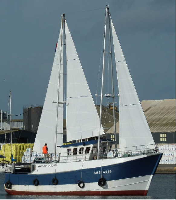 The Grand Largue is a 16m boat with hybrid propulsion based in St Malo and has been made available to EESAB by Pierre-Yves Glorennec (Avel Vor Technologie). The "Grand Largue" project received approval from the Pôle Mer Bretagne in 2007 to develop an auxiliary automated sail system on a fishing boat: http://www.pole-mer-bretagne-atlantique.com/grand-largue.php